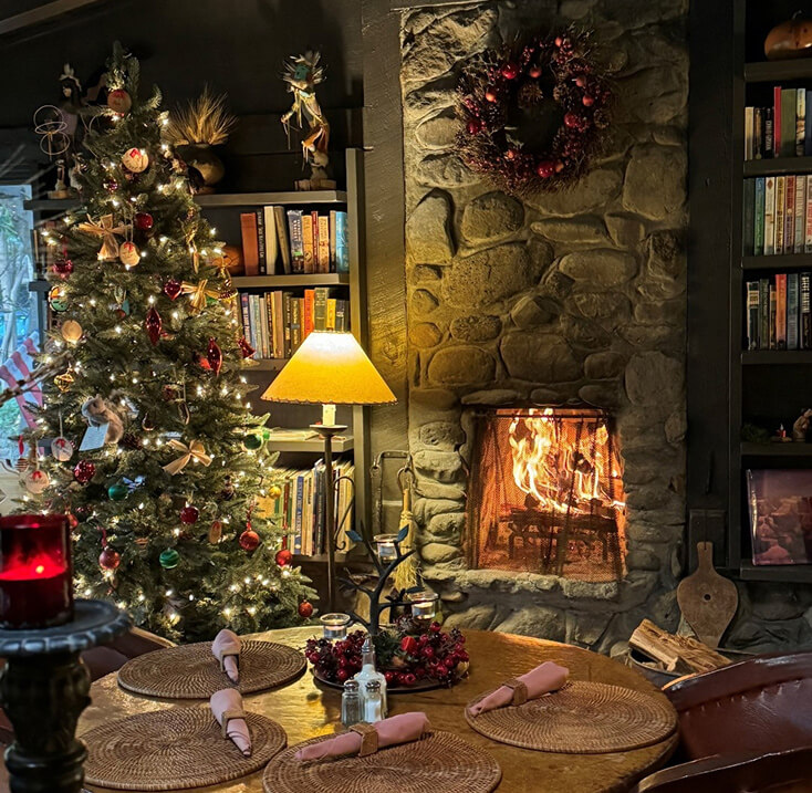 Ivy House, designed for two with a king bed, kitchenette, large wood-burning stone fireplace, and patio are all tucked a mere 100’ from the creek. This was originally a barn built by the Etters, homesitters who settled on this property in the 1930s.